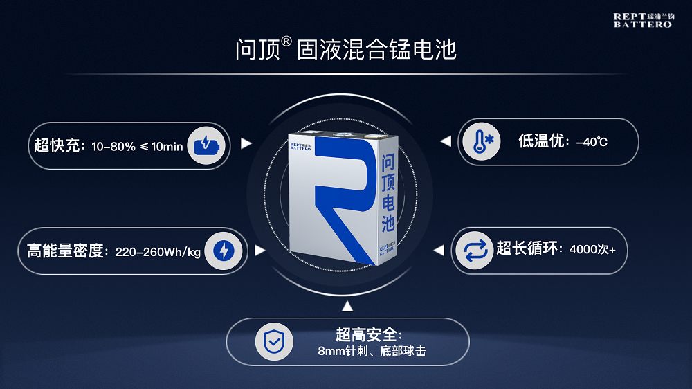 在补能效率持续提升的同时,动力电池技术正加速向更高能量密度与更高安全性能迈进。面对液态电池与全固态电池在发展阶段的差异,瑞浦兰钧推出问顶®新型固液混合电池技术平台,通过材料体系与结构设计的融合创新,构建了锰基与高镍双体系产品布局,以满足不同应用场景对性能、安全与成本的差异化需求。